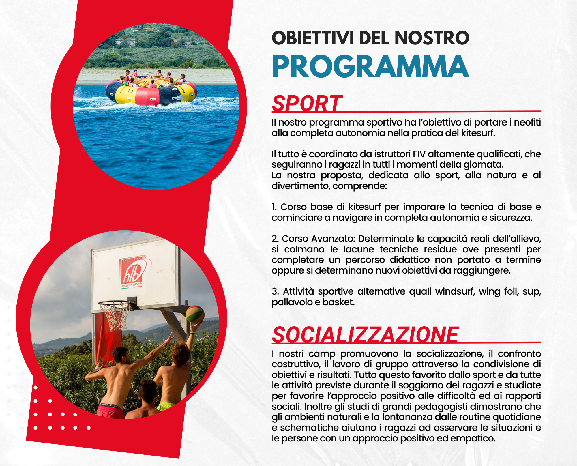 3. Attività sportive alternative quali windsurf, wing foil, sup, pallavolo e basket.